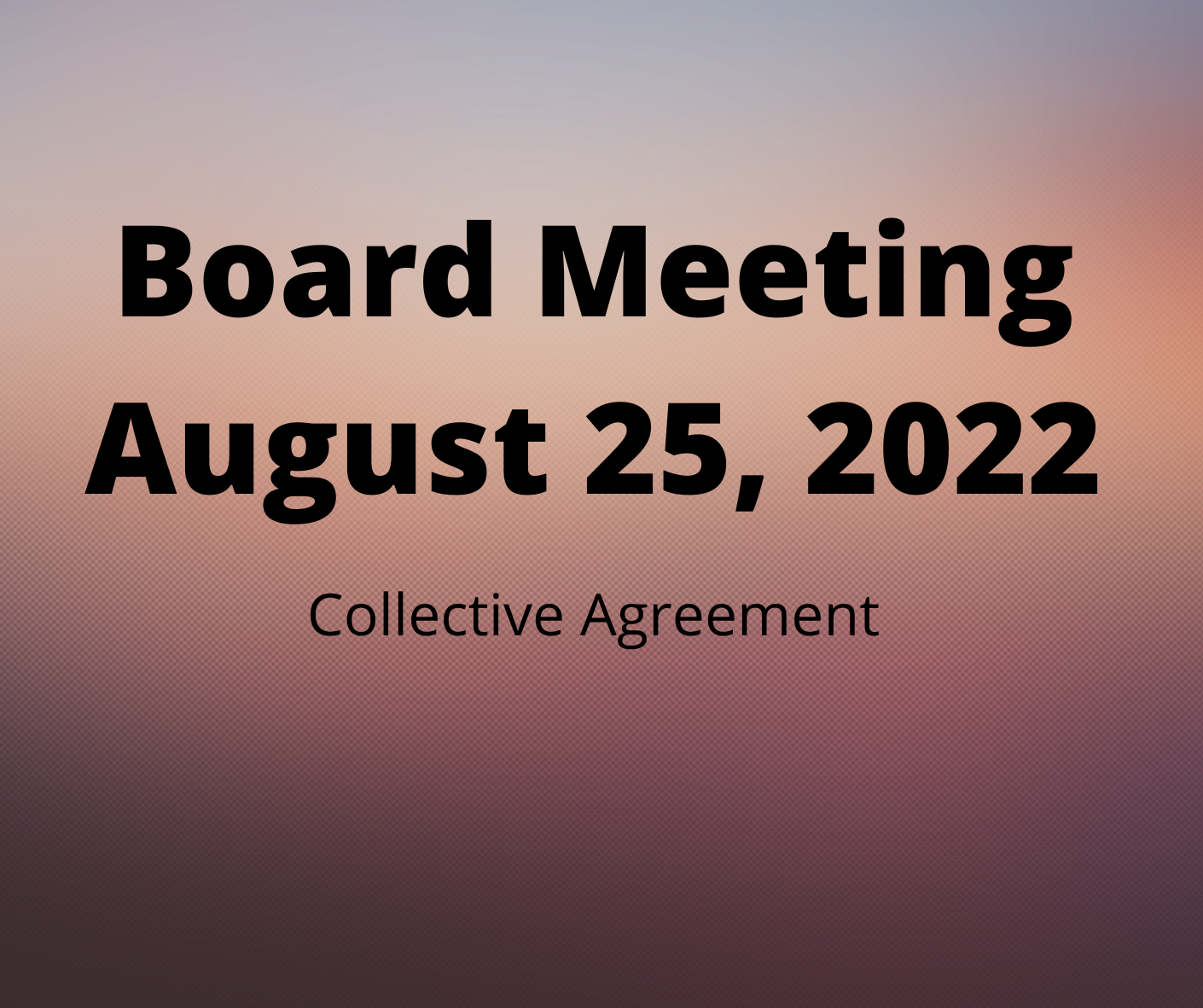 A virtual Board Meeting will be held August 25, 2022 at 4:30PM to discuss the Collective Agreement. Join with Google Meet - meet.google.com/opn-gzzf-xgn