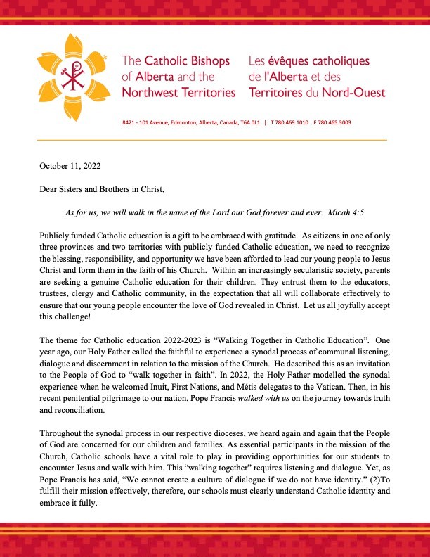 Please find the letter from the Catholic Bishops of Alberta and NWT here.