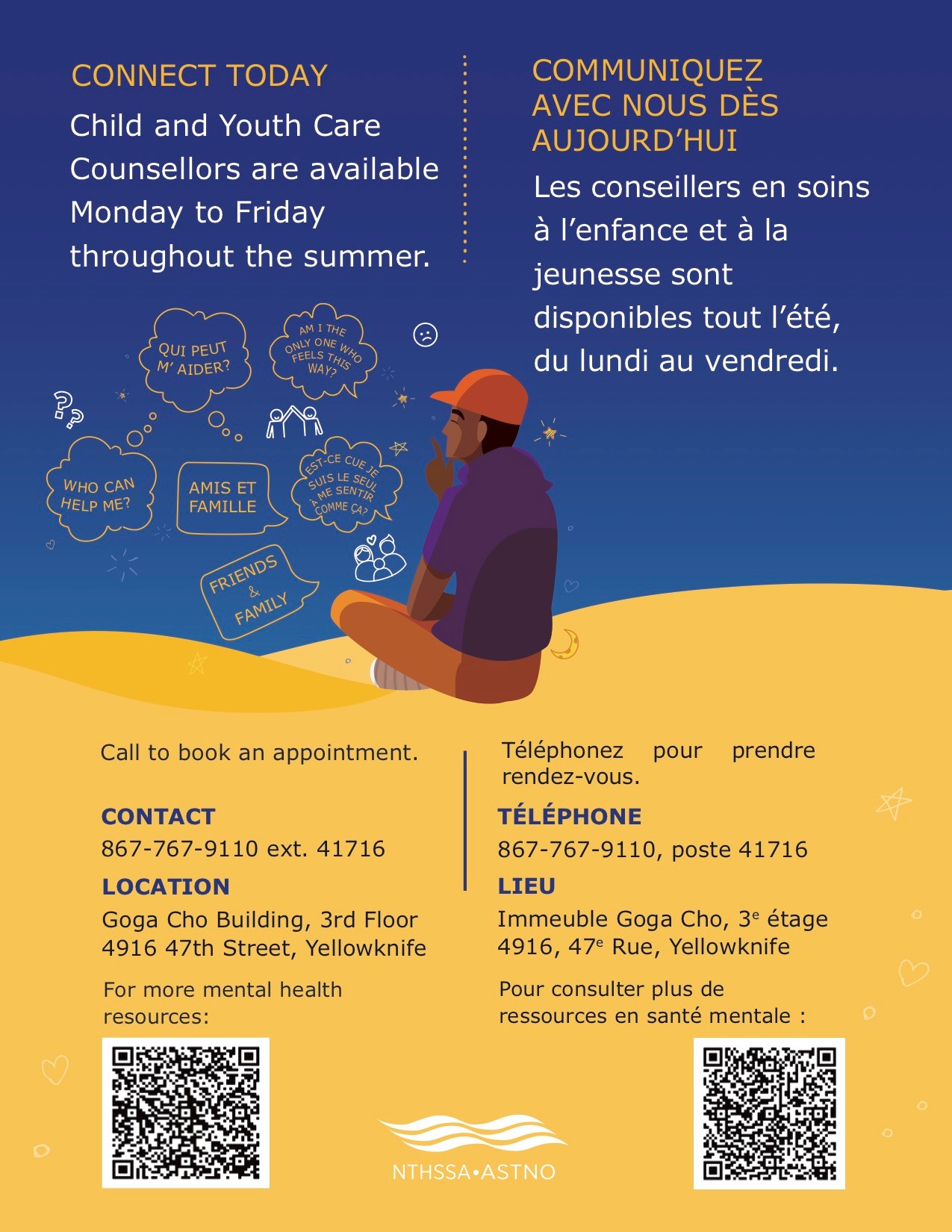 Child and Youth Care Counsellors are available Monday to Friday throughout the summer.