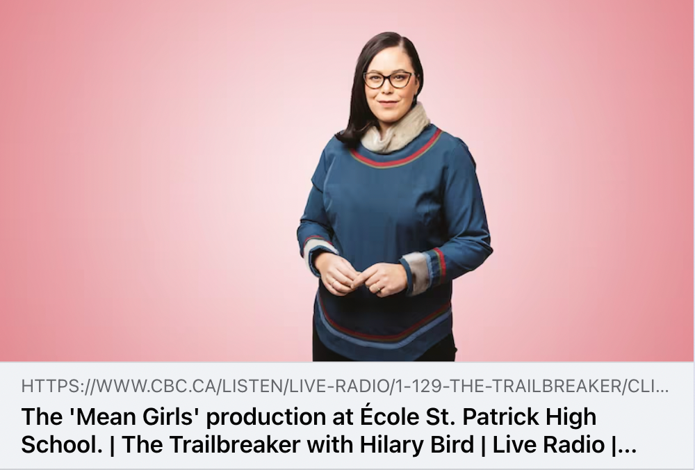 --> https://www.cbc.ca/listen/live-radio/1-129-the-trailbreaker/clip/16030016-the-mean-girls-production-ecole-st.-patrick-high