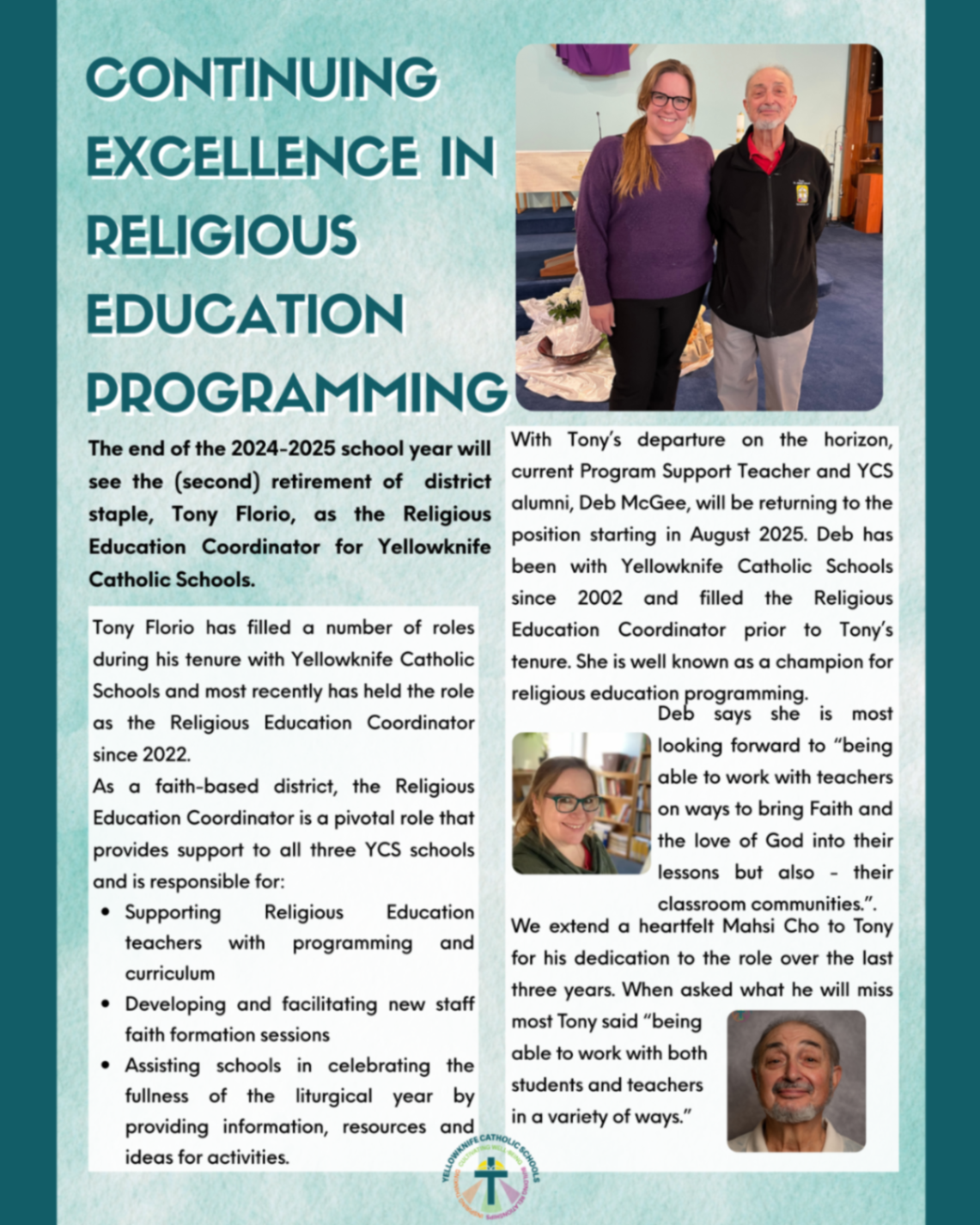 Please see our announcement regarding changes to the Religious Education Coordinator for YCS schools.